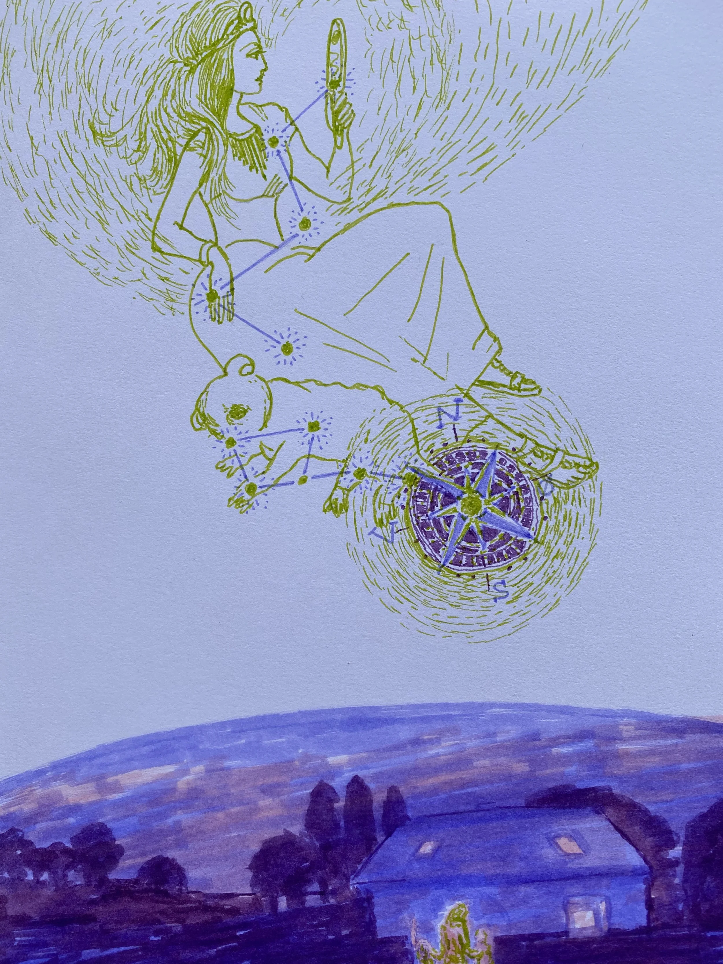 Nordstjernen danser - I look at the sky - ink on paper