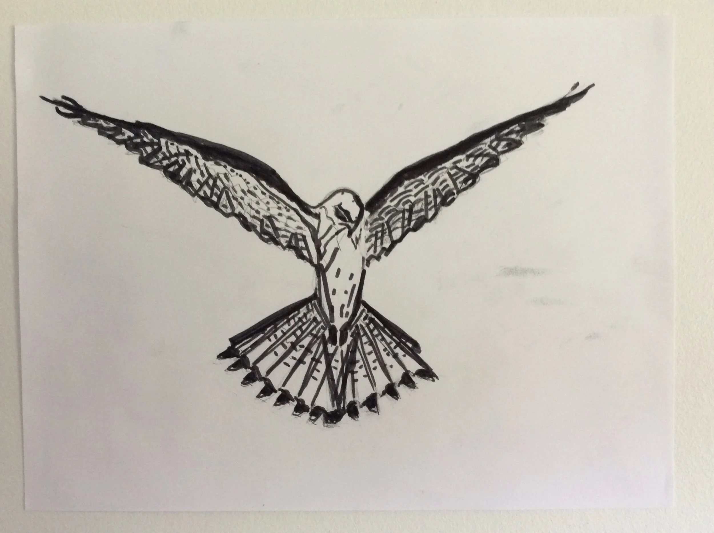 Hawk - ink on paper - design to Redemptive - Harmonic Hawk"